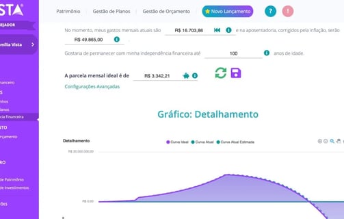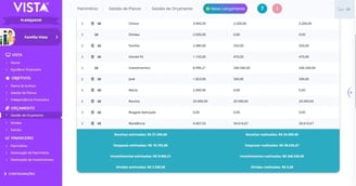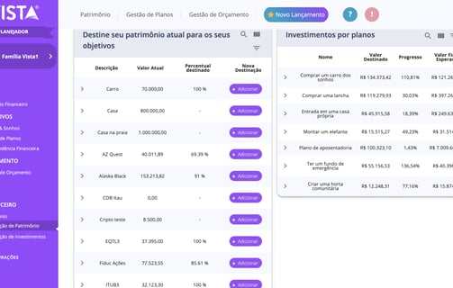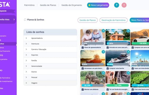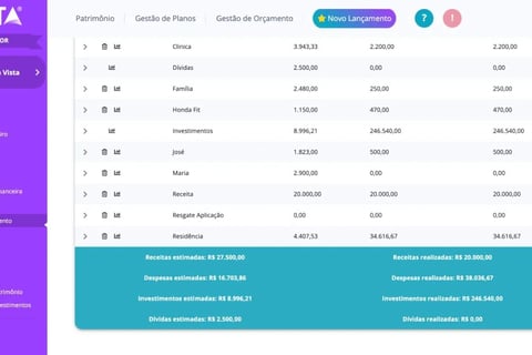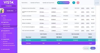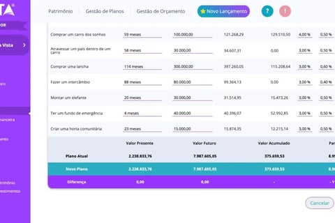 Uma visualização completa de todos os planos e o valor necessário para a realização de todos eles.