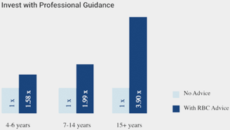 Segundo estudo do Royal Bank of Canada, investidores que tiveram uma orientação profissional por 15 anos tiveram, na média, um patrimônio quatro vezes maior do que os que não tinham um consultor.