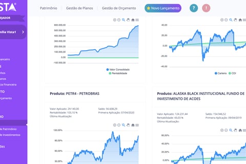 Acompanhe todos os seus investimentos financeiros e imobilizados. Cotização automática de todos os investimentos.