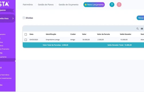 Cadastro e organização das dívidas bancárias, financiamentos e outras para organização e controle.